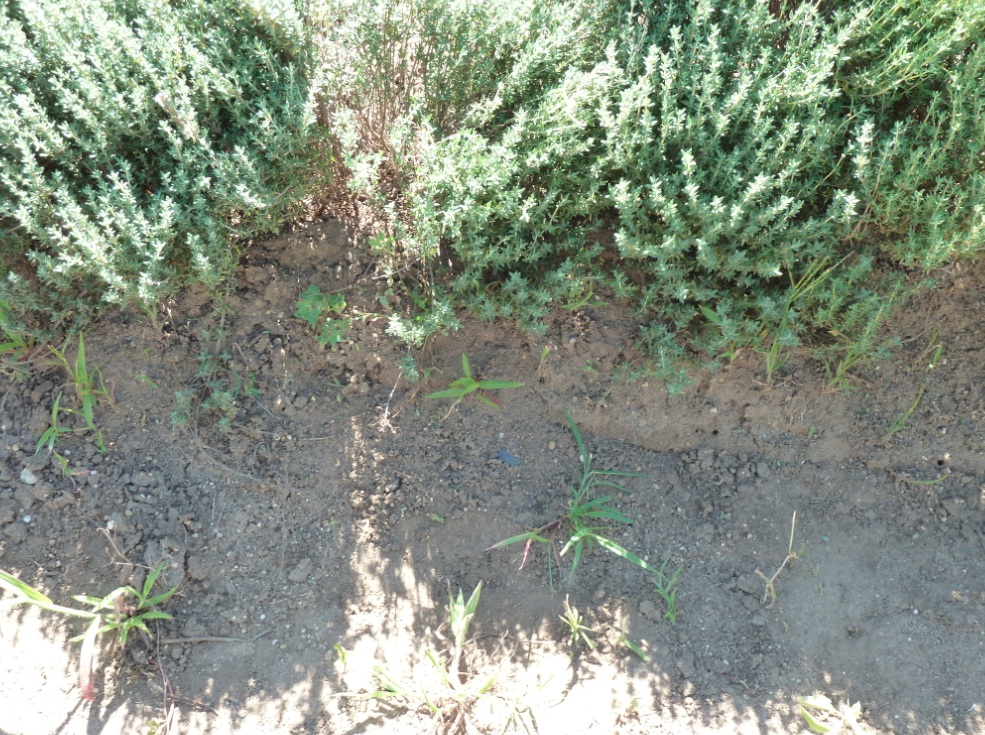 A borsos menta gyökeres sarjhajtásai telepítés után (Fotó: Pluhár Zs., 2011)