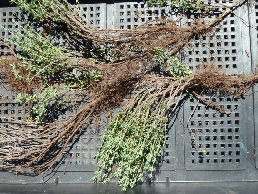 A rozmaring dugványozáshoz előkészített félfás hajtásrészei (Fotó: Pluhár Zs.,2011)